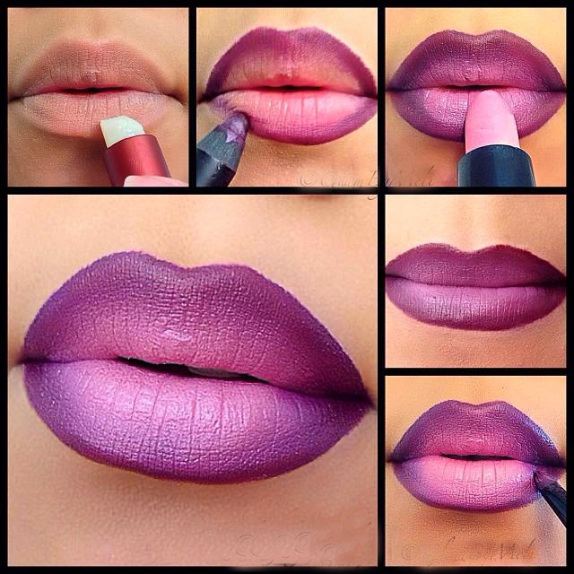 Обычно женщины красят губы однотонной помадой, иногда обводя контуры карандашом, который на тон светлее или темнее "губнушки". Но теперь это стало не модным :). Многим хочется смотреться интересней и привлекать к себе внимание. В таком случае поможет макияж губ в стиле омбре - плавный переход от одного цвета к другому. В чем смысл такого макияжа? Он позволяет визуально увеличивать (или уменьшить) губы, темный контур и более светлая середина губ создают необычный эффект – губы становятся пухлыми. При помощи омбре любые, даже самые тонкие губы, кажутся ярче и объемнее. Делая акцент в нужных местах, визуально изменяя форму губ, можно слегка изменять пропорции лица, опять же - визуально. Примеры омбре: