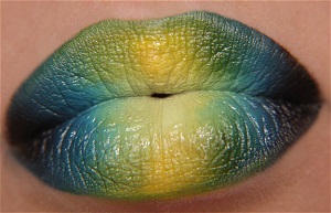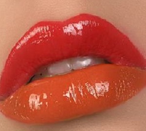 В этом случае важно, чтобы цвет губных помад был контрастным, иначе губы не будут выглядеть эффектно. Например: фуксия с оранжевым; алый с фиолетовым; маджента (цвет засохших лепестков роз) с бледно-сиреневым. В этой технике главное - не смыкать сильно губы, иначе цвета перемешаются или использовать очень стойкие "губнушки". Макияж также должен быть нейтральным, а хорошо с двухцветными губами сочетаются черные стрелки по верхнему веку. Ну и не забываем, что губы должны быть отшелушенными и увлажненными перед началом нанесения двухцветного макияжа губ.